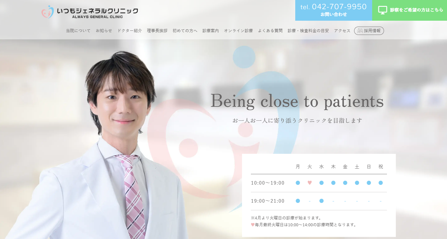 | 診療時間 | 月~金9:00~13:00/14:00~20:00 木・金曜日:14:00 ~ 17:30 土曜日:8:30 ~ 13:00 休診日:日曜・祝日 |